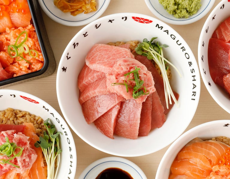 At まぐろとシャリ, we specialize in premium maguro (tuna) bowls, combining the finest wild-caught bluefin tuna with our specially crafted red vinegar rice made from Niigata's rare Koshiibuki rice. Under the meticulous supervision of the renowned sushi restaurant Hakkoku Ginza, led by Michelin-starred chef Hiroyuki Sato, we ensure that every bowl upholds the highest standards of quality and authenticity. Chef Sato's expertise in balancing rich flavors with traditional techniques elevates our maguro bowls to a whole new level.
